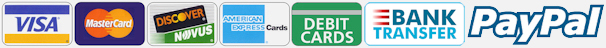 We accept Visa, Mastercard, Discover and American Express credit cards, debit/ATM cards, and payments through PayPal as well as direct bank transfers.